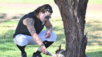 [OSEN=멜버른(호주), 박준형 기자] 한화 이글스가 3일 호주 빅토리아주 멜버른에 위치한 멜버른볼파크에서 스프링캠프를 진행했다.훈련 마친 김범수가 구장에서 기르는 강아지에게 물을 주고 있다. 2024.02.03 / soul1014@osen.co.kr