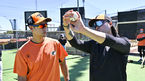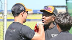 [OSEN=멜버른(호주), 박준형 기자] 한화 이글스가 3일 호주 빅토리아주 멜버른에 위치한 멜버른볼파크에서 스프링캠프를 진행했다.페라자가 하주석과 이야기 나누고 있다. 2024.02.03 / soul1014@osen.co.kr