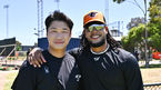 [OSEN=멜버른(호주), 박준형 기자] 한화 이글스가 3일 호주 빅토리아주 멜버른에 위치한 멜버른볼파크에서 스프링캠프를 진행했다.남지민과 페냐가 함께 포즈를 취하고 있다. 2024.02.03 / soul1014@osen.co.kr