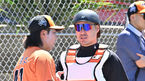 [OSEN=멜버른(호주), 박준형 기자] 한화 이글스가 3일 호주 빅토리아주 멜버른에 위치한 멜버른볼파크에서 스프링캠프를 진행했다.이재원이 불펜투구 마친 김범수와 이야기를 나누고 있다. 2024.02.03 / soul1014@osen.co.kr