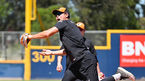 [OSEN=멜버른(호주), 박준형 기자] 한화 이글스가 3일 호주 빅토리아주 멜버른에 위치한 멜버른볼파크에서 스프링캠프를 진행했다.이재원이 로봇 심판 스트라이크존 대비한 가상의 존을 염두해두고 포구 연습을 하고 있다 2024.02.
