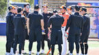 [OSEN=멜버른(호주), 박준형 기자] 한화 이글스가 3일 호주 빅토리아주 멜버른에 위치한 멜버른볼파크에서 스프링캠프를 진행했다.김우석 코치가 선두들과 미팅을 갖고 있다. 2024.02.03 / soul1014@osen.co.kr