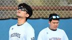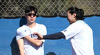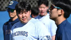 [OSEN=멜버른(호주), 박준형 기자] 한화 이글스가 3일 호주 빅토리아주 멜버른에 위치한 멜버른볼파크에서 스프링캠프를 진행했다.박승민 코치가 문동주의 캐치볼을 지켜보고 있다. 2024.02.03 / soul1014@osen.co.kr
