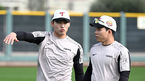 [OSEN=스코츠데일(미국 애리조나주), 이대선 기자] 5일(한국시간) 미국 애리조나주 스코츠데일에 위치한 인디언 스쿨 파크 베이스볼 필드에서 LG 트윈스의 스프링캠프가 진행됐다.LG 김현종과 문성주가 이야기를 나누며 훈련장을