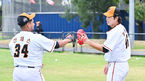 [OSEN=멜버른(호주), 박준형 기자] 한화 이글스가 5일 호주 빅토리아주 멜버른에 위치한 멜버른볼파크에서 스프링캠프를 진행했다.한화 이태양과 산체스가 롱토스 마친뒤 하이파이브를 하고 있다. 2024.02.05 / soul1014@osen.co.kr