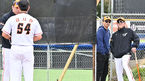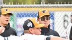 [OSEN=멜버른(호주), 박준형 기자] 한화 이글스가 5일 호주 빅토리아주 멜버른에 위치한 멜버른볼파크에서 스프링캠프를 진행했다.최원호 감독과 손혁 단장이 김서현의 불펜 피칭을 지켜본뒤 미소 짓고 있다. 2024.02.05 / soul1014@osen