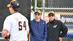[OSEN=멜버른(호주), 박준형 기자] 한화 이글스가 5일 호주 빅토리아주 멜버른에 위치한 멜버른볼파크에서 스프링캠프를 진행했다.최원호 감독과 손혁 단장이 김서현의 불펜 피칭을 지켜보고 있다. 2024.02.05 / soul1014@osen.co.kr