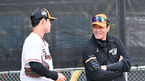 [OSEN=멜버른(호주), 박준형 기자] 한화 이글스가 5일 호주 빅토리아주 멜버른에 위치한 멜버른볼파크에서 스프링캠프를 진행했다.한화 박승민 코치가 문동주와 이야기를 나누고 있다. 2024.02.05 / soul1014@osen.co.kr