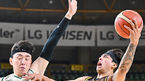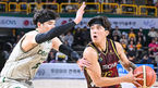 [OSEN=창원, 이석우 기자] 6일 창원 체육관에서 2023-2024 정관장 프로농구 창원 LG와 원주 DB의 경기가 열렸다. 창원 LG 저스틴 구탕이 원주 DB 강상재의 마크를 피해 골밑슛을 시도하고 있다. 2024.02.06 / foto0307@osen.co.kr