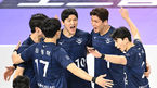 [OSEN=인천, 김성락 기자] 7일 오후 인천 계양구 인천계양체육관에서 ‘도드람 2023-2024 V-리그’ 남자부 대한항공과 KB손해보험의 경기가 진행됐다.1세트 대한항공 선수들이 득점에 성공한 뒤 동료 선수들과 기쁨을 나누고 있다. 20