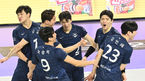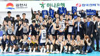 [OSEN=인천, 김성락 기자] 7일 오후 인천 계양구 인천계양체육관에서 ‘도드람 2023-2024 V-리그’ 남자부 대한항공과 KB손해보험의 경기가 진행됐다.4세트 대한항공 선수들이 득점에 기뻐하고 있다. 2024.02.07 / ksl0919@osen.co.kr