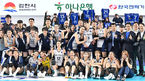 [OSEN=김천, 이석우 기자] 7일 김천실내체육관에서 도드람 2023-2024 V리그 한국도로공사와 IBK 기업은행의 경기가 열렸다. IBK 기업은행 김호철 감독과 선수들이 세트스코어 3-0으로 승리한 후 12승 기념촬영을 하고 있다. 2024.02.07 / fot