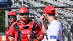 [OSEN=캔버라(호주), 박준형 기자] KIA 타이거즈가 7일 호주 캔버라 나라분다 볼파크에서 스프링캠프 일정을 소화했다.KIA 새 외인투수 제임스 네일이 불펜 투구 이후 한준수와 이야기를 나누고 있다. 2024.02.06 / soul1014@osen.co.kr
