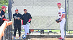 [OSEN=캔버라(호주), 박준형 기자] KIA 타이거즈가 7일 호주 캔버라 나라분다 볼파크에서 스프링캠프 일정을 소화했다.KIA 정재훈 투수 코기가 새 외인투수 제임스 네일의 불펜 투구를 지켜보고 있다. 2024.02.06 / soul1014@osen.co.kr