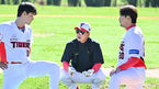 [OSEN=캔버라(호주), 박준형 기자] KIA 타이거즈가 7일 호주 캔버라 나라분다 볼파크에서 스프링캠프 일정을 소화했다.KIA 정재훈 투수 코치가 전상현, 이준영과 이야기를 나누고 있다. 2024.02.06 / soul1014@osen.co.kr