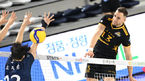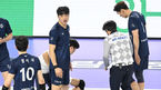 [OSEN=인천, 김성락 기자] 7일 오후 인천 계양구 인천계양체육관에서 ‘도드람 2023-2024 V-리그’ 남자부 대한항공과 KB손해보험의 경기가 진행됐다.3세트 대한항공 정성민이 수비를 하는 과정에서 다리 통증을 호소하고 있다. 2024.