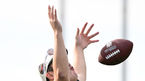 [OSEN=스코츠데일(미국 애리조나주), 이대선 기자] 6일(한국시간) 미국 애리조나주 스코츠데일에 위치한 인디언 스쿨 파크 베이스볼 필드에서 LG 트윈스의 스프링캠프가 진행됐다.LG 성동현이 럭비공을 놓치고 있다. 2024.02.06 /sunday@
