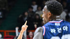 [OSEN=부산, 이석우 기자] 8일 부산 사직체육관에서 2023-2024 정관장 프로농구 부산 KCC와 창원 LG의 경기가 열렸다. 부산 KCC 허웅이 송교창의 골에 손을 들어 보이고 있다. 2024.02.08 / foto0307@osen.co.kr