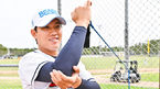 [OSEN=시드니(호주), 박준형 기자] 두산 베어스가 9일 호주 시드니 블랙타운 베이스볼 스타디움에서 2024 호주 시드니 스프링캠프를 진행했다.두산 박신지가 튜빙밴드로 훈련하고 있다. 2024.02.09 / soul1014@osen.co.kr