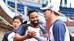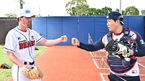 [OSEN=시드니(호주), 박준형 기자] 두산 베어스가 9일 호주 시드니 블랙타운 베이스볼 스타디움에서 2024 호주 시드니 스프링캠프를 진행했다.두산 양의지가 불펜 마친 브랜든과 하이파이브를 하고 있다. 2024.02.09 / soul1014@osen.co.kr