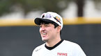 [OSEN=스코츠데일(미국 애리조나주), 이대선 기자] 9일(한국시간) 미국 애리조나주 스코츠데일에 위치한 인디언 스쿨 파크 베이스볼 필드에서 LG 트윈스의 스프링캠프가 진행됐다.LG 윤호솔이 훈련 중 미소를 짓고 있다. 2024.02.09 /s