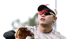 [OSEN=스코츠데일(미국 애리조나주), 이대선 기자] 9일(한국시간) 미국 애리조나주 스코츠데일에 위치한 인디언 스쿨 파크 베이스볼 필드에서 LG 트윈스의 스프링캠프가 진행됐다.LG 김윤식이 캐치볼을 하고 있다. 2024.02.09 /sunday@os
