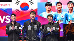 [OSEN=부산, 이석우 기자] 16일 부산 해운대구 벡스코에서 BNK부산은행 2024 부산세계탁구선수권대회 조별예선이 열렸다. 대한민국 장우진, 임종훈, 안재현이 폴란드와의 대결을 앞두고 인사를 하고 있다. 2024.02.16 / foto0307@osen.co.kr