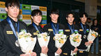 [OSEN=인천국제공항, 박준형 기자] 한국 수영대표팀이 19일 오후 인천국제공항을 통해 귀국했다.황선우와 김우민은 자유형 200m와 400m에서 우승하며 금메달을 목에 걸었다. 또한 단체종목인 계영 800m에서도 값진 은메달을 땄다. 황