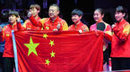 [OSEN=부산, 이석우 기자] 24일 부산 해운대구 벡스코에서 BNK부산은행 2024 부산세계탁구선수권대회 여자 결승 중국과 일본의 경기가 열렸다. 우승을 차지한 중국 선수들이 오성홍기를 들고 포즈를 취하고 있다. 2024.02.24 / foto0307@os