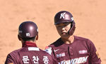 [OSEN=이천, 조은정 기자]9일 이천 베어스파크에서 ‘2024 신한은행 SOL KBO리그’ 두산 베어스와 키움 히어로즈의 시범경기가 열렸다.5회초 1사 만루 키움 고영우가 2타점 적시타를 날린 뒤 문찬종 코치와 기뻐하고 있다. 2024.03.09 /cej