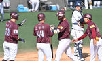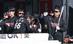 [OSEN=이천, 조은정 기자]9일 이천 베어스파크에서 ‘2024 신한은행 SOL KBO리그’ 두산 베어스와 키움 히어로즈의 시범경기가 열렸다.5회초 2사 2,3루 키움 김동헌이 역전 3점 홈런을 날린 뒤 홈에서 축하를 받고 있다. 2024.03.09 /cej@ose