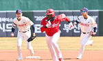 [OSEN=부산, 이석우 기자] 9일 부산 사직구장에서 2024 신한 SOL 뱅크 KBO 리그 롯데 자이언츠와 SSG 랜더스의 경기가 열렸다. SSG 랜더스 에레디아가 4회초 1사 1,2루 한유섬의 중견수 플라이볼때 2루로 달리다 귀루하고 있다. 2024.03.09 / f