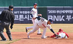 [OSEN=대전, 최규한 기자] 9일 대전 한화생명이글스파크에서 ‘2024 신한은행 SOL KBO리그’ 시범경기 한화 이글스와 삼성 라이온즈의 경기가 열렸다.1회초 무사 1루 상황 삼성 김성윤 타석 때 도루를 시도한 주자 김지찬이 한화 1루
