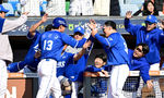 [OSEN=대전, 최규한 기자] 10일 대전 한화생명이글스파크에서 ‘2024 신한은행 SOL KBO리그’ 시범경기 한화 이글스와 삼성 라이온즈의 경기가 열렸다.9회초 1사 1루 상황 삼성 김재혁이 달아나는 좌월 투런포를 날리고 홈을 밟은 뒤