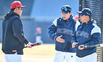 [OSEN=창원, 이석우 기자] 10일 창원 NC파크에서 2024 신한 SOL 뱅크 KBO 리그 NC 다이노스와 KIA 타이거즈의 시범경기가 열렸다. KIA 타이거즈 진갑용 코치가 선수들의 훈련을 돕고 있다. 2024.03.10 / foto0307@osen.co.kr