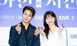 [OSEN=민경훈 기자] 11일 오후 서울 마포구 스탠포드 호텔 코리아 그랜드볼룸에서 지니TV 오리지널 '야한 사진관' 제작발표회가 열렸다.배우 주원과 권나라가 포토타임을 갖고 있다. 2024.03.11 / rumi@osen.co.kr
