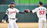 [OSEN=부산, 이석우 기자] 11일 부산 사직구장에서 2024 신한 SOL 뱅크 KBO 리그 롯데 자이언츠와 두산 베어스의 시범경기가 열렸다.롯데 자이언츠 선발 투수 윌커슨이 1회초 수비를 무실점으로 막고 박승욱과 하이파이브를 하고 있