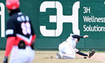 [OSEN=대전, 최규한 기자] 11일 대전 한화생명이글스파크에서 ‘2024 신한 SOL Bank KBO리그’ 시범경기 한화 이글스와 KIA 타이거즈의 경기가 열렸다.1회초 무사 선두타자로 나선 KIA 박찬호의 뜬공타구를 한화 우익수 임종찬이 몸을 날