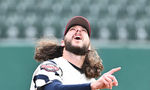 [OSEN=부산, 이석우 기자] 11일 부산 사직구장에서 2024 신한 SOL 뱅크 KBO 리그 롯데 자이언츠와 두산 베어스의 시범경기가 열렸다. 롯데 자이언츠 선발 투수 윌커슨이 1회초 두산 베어스 양의지의 플라이 타구를 가리키고 있다. 2024.0