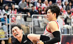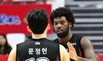 [OSEN=수원, 김성락 기자] 25일 오후 경기 수원시 KT소닉붐아레나에서 '2024-2025 KCC 프로농구' 수원 KT 소닉붐과 서울 SK 나이츠의 경기가 열렸다. 2쿼터 KT 해먼즈가 3점슛에 성공, 문정현과 기쁨을 나누고 있다. 2024.10.25 / ksl0919@osen.co.kr