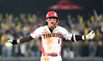 [OSEN=광주, 이대선 기자] 28일 광주 기아챔피언스필드에서 2024 신한 SOL뱅크 KBO 한국시리즈 5차전 KIA 타이거즈와 삼성 라이온즈의 경기가 열렸다.KIA는 양현종, 삼성은 이승현을 선발 투수로 내세웠다.8회말 KIA 이창진이 안타를 치