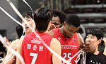 [OSEN=안양, 김성락 기자] 7일 오후 안양 동안구 정관장 아레나에서 '2024-2025 KCC 프로농구' 정관장 레드부스터스와 KT 소낙붐의 경기가 열렸다. 이날 경기는 정관장이 KT를 상대로 74-73으로 승리했다.승리가 확정된 순간 정관장 선수