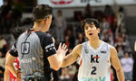 [OSEN=안양, 김성락 기자] 7일 오후 안양 동안구 정관장 아레나에서 '2024-2025 KCC 프로농구' 정관장 레드부스터스와 KT 소낙붐의 경기가 열렸다. 이날 경기는 정관장이 KT를 상대로 74-73으로 승리했다.4쿼터 케이티 허훈이 파울 판정
