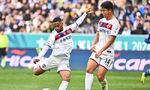 [OSEN=울산, 이석우 기자] 23일 울산 문수축구경기장에서 하나은행 K리그1 2024 울산 HD와 수원FC의 경기가 열렸다. 창단 후 사상 최초로 3연패를 달성한 울산 HD의 '챔피언 세리머니’가 펼쳐진다.수원FC 안데르손이 슛을 시도하고 있