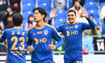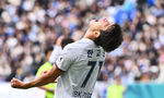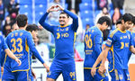 [OSEN=울산, 이석우 기자] 23일 울산 문수축구경기장에서 하나은행 K리그1 2024 울산 HD와 수원FC의 경기가 열렸다. 창단 후 사상 최초로 3연패를 달성한 울산 HD의 '챔피언 세리머니’가 펼쳐진다.수원FC 한교원이 슛이 울산 HD 조현우