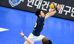 [OSEN=수원, 지형준 기자] 8일 오후 수원실내체육관에서 도드람 2024-2025 V리그 남자부 한국전력과 대한항공의경기가 열렸다.한국전력은 7승5패(5위), 대한한공은 8승4패(2위)를 기록중이다.1세트 대한항공 한선수가 강타를 날리고 있