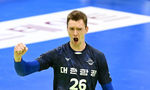 [OSEN=수원, 지형준 기자] 8일 오후 수원실내체육관에서 도드람 2024-2025 V리그 남자부 한국전력과 대한항공의경기가 열렸다.한국전력은 7승5패(5위), 대한한공은 8승4패(2위)를 기록중이다.1세트 대한항공 막심이 득점에 기뻐하고 있