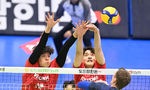 [OSEN=수원, 지형준 기자] 8일 오후 수원실내체육관에서 도드람 2024-2025 V리그 남자부 한국전력과 대한항공의경기가 열렸다.한국전력은 7승5패(5위), 대한한공은 8승4패(2위)를 기록중이다.1세트 대한항공 막심이 한국전력 블로킹을