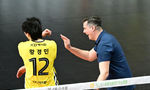 [OSEN=안산, 김성락 기자] 10일 오후 경기 안산시 상록수체육관에서 도드람 2024-2025 프로배구 남자부 OK 저축은행과 KB 손해보험의 경기가 열렸다.최근 KB 손해보험은 홈 구장인 의정부체육관의 안전사고 발생 우려에 따른 긴급 안전