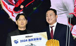 [OSEN=김성락 기자] KIA 타이거즈 김태군이 13일 서울 강남구 삼성동 코엑스 오디토리움에서 진행된 2024 신한은행 SOL 뱅크 KBO 골든글러브 시상식에서 골든포토상을 수상하며 한국스포츠사진기자협회 지형준 회장과 기념촬영을 하